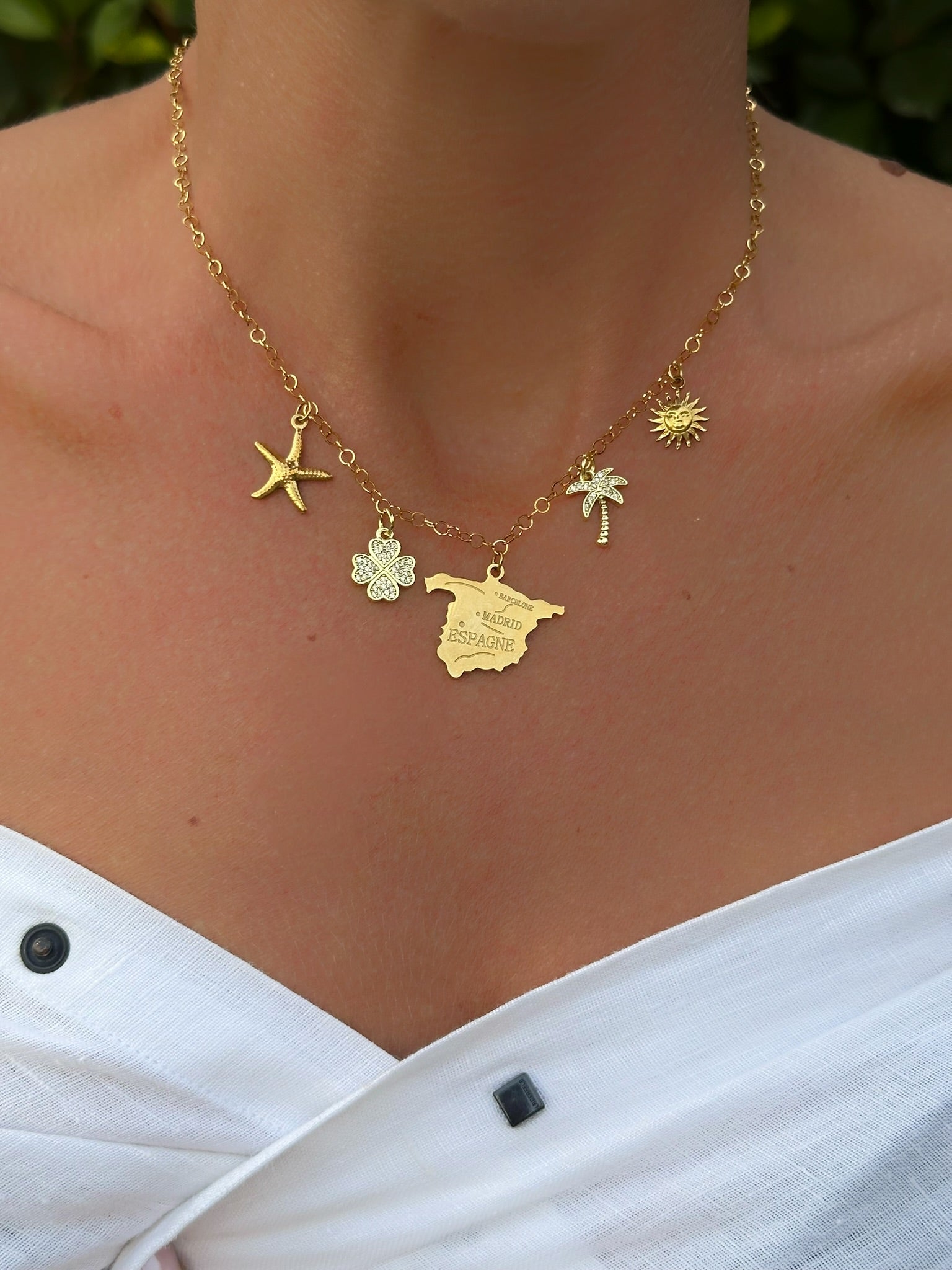 Dévoilez votre amour pour l'Espagne avec ce collier. Fabriqué avec soin, ce bijou est unique pour les amoureux du pays.