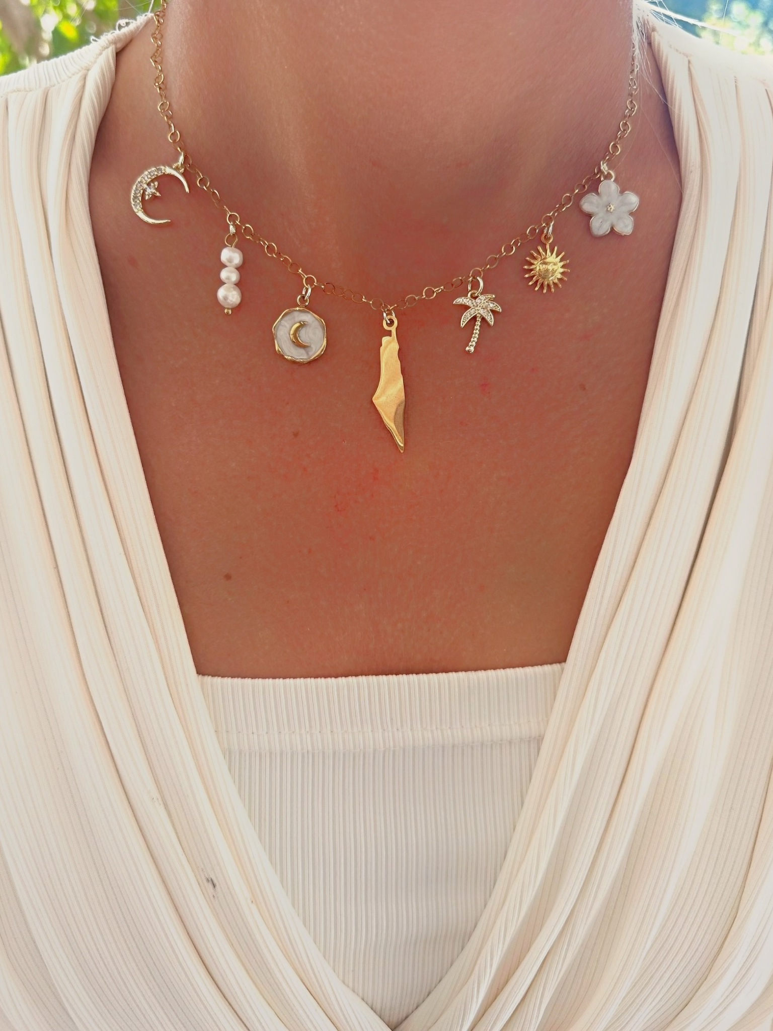 Ce collier délicat met en avant la carte de la Palestine, ce bijou élégant allie simplicité et signification.