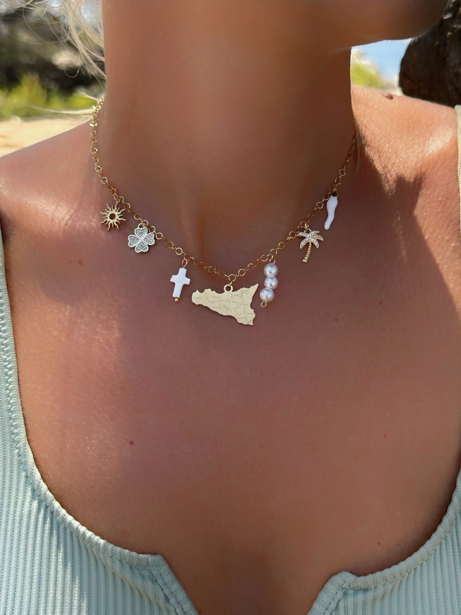 Le collier Sicile incarne l’élégance raffinée inspirée par la beauté méditerranéenne. Ce bijou sophistiqué allie design délicat et charme intemporel, parfait pour sublimer votre allure avec une touche de grâce discrète et authentique. Un choix idéal pour celles qui apprécient la simplicité élégante au quotidien.
