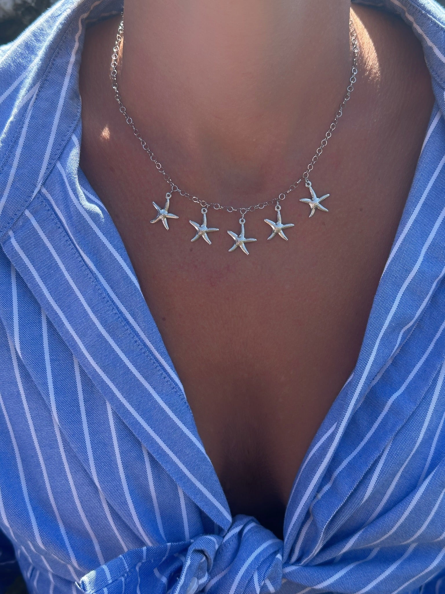 Sogno di Sirena incarne l'élégance marine avec cinq étoiles de mer délicatement représentées, évoquant un rêve de sirène. Ce design raffiné apporte une touche sophistiquée et poétique, parfaite pour celles qui souhaitent exprimer leur lien avec l'océan tout en affichant un style unique et distingué.